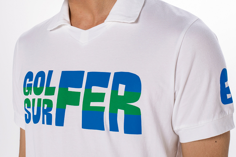 こなれ感を引き上げる、スキッパーポロ。SURFERとGOLFERを合体させた“SURGOLFER” のプリントが、茶目っ気を発揮。