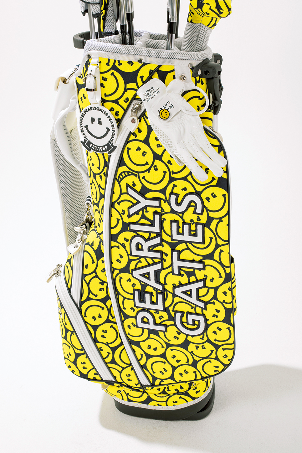イエローニコちゃんのポップなコーディネートには、キャディバッグも抜かり無く、ニコちゃん総柄モデルでトータルコーディネート。