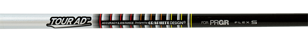 ヘッドに施されたグラデーションロゴに合わせたデザインの専用設計コラボシャフト「TOUR AD FOR PRGR」を採用。