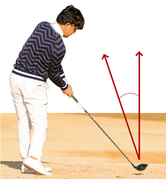 水平な地面とシャフトの中心線がおりなす角度。地面から打たないウッド類では見逃しがちだが「プロユースのモデルでは2°近く差があり、数値の大きいアップライトな方が軌道が縦振りで球のつかまりが良くなります」