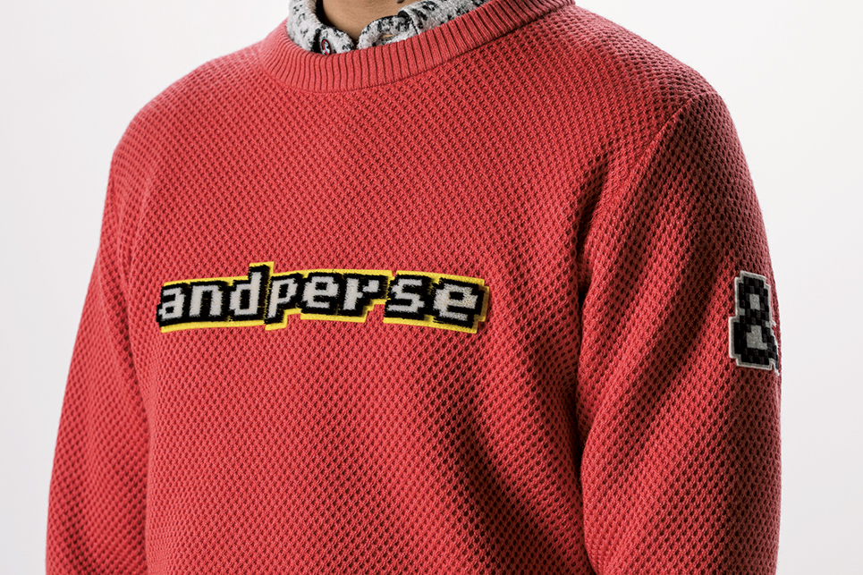 織りにも拘ったニットの胸元に、北欧デザインをイメージした“ピクセルアートロゴ”を配してポップな印象の一枚に。