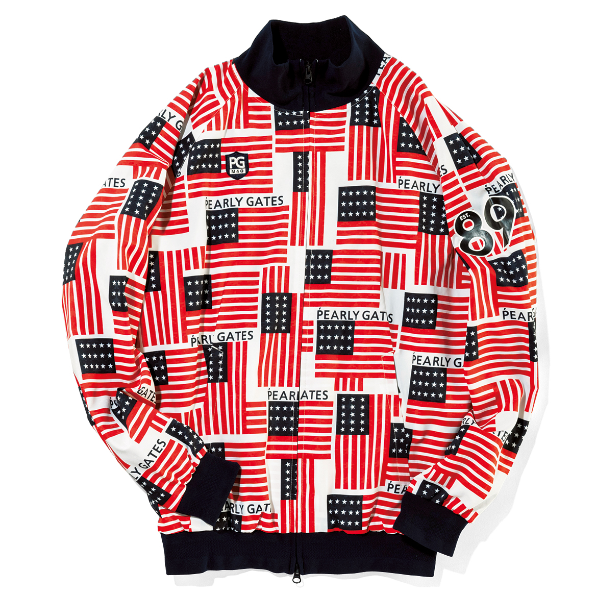 パーリーゲイツオリジナルの星条旗をモチーフとした大胆なデザインを全身で楽しむアメリカ―ノスタイルで時代を超えた魅力と新鮮で力強いパワーを発信。