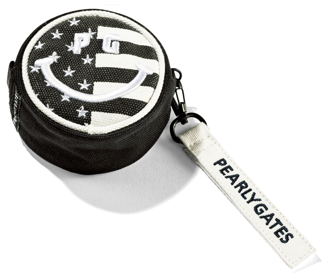 ニコちゃんフォルムのシックな星条旗モチーフが、グッズにも拘る大人の遊び心を感じるボールポーチ。