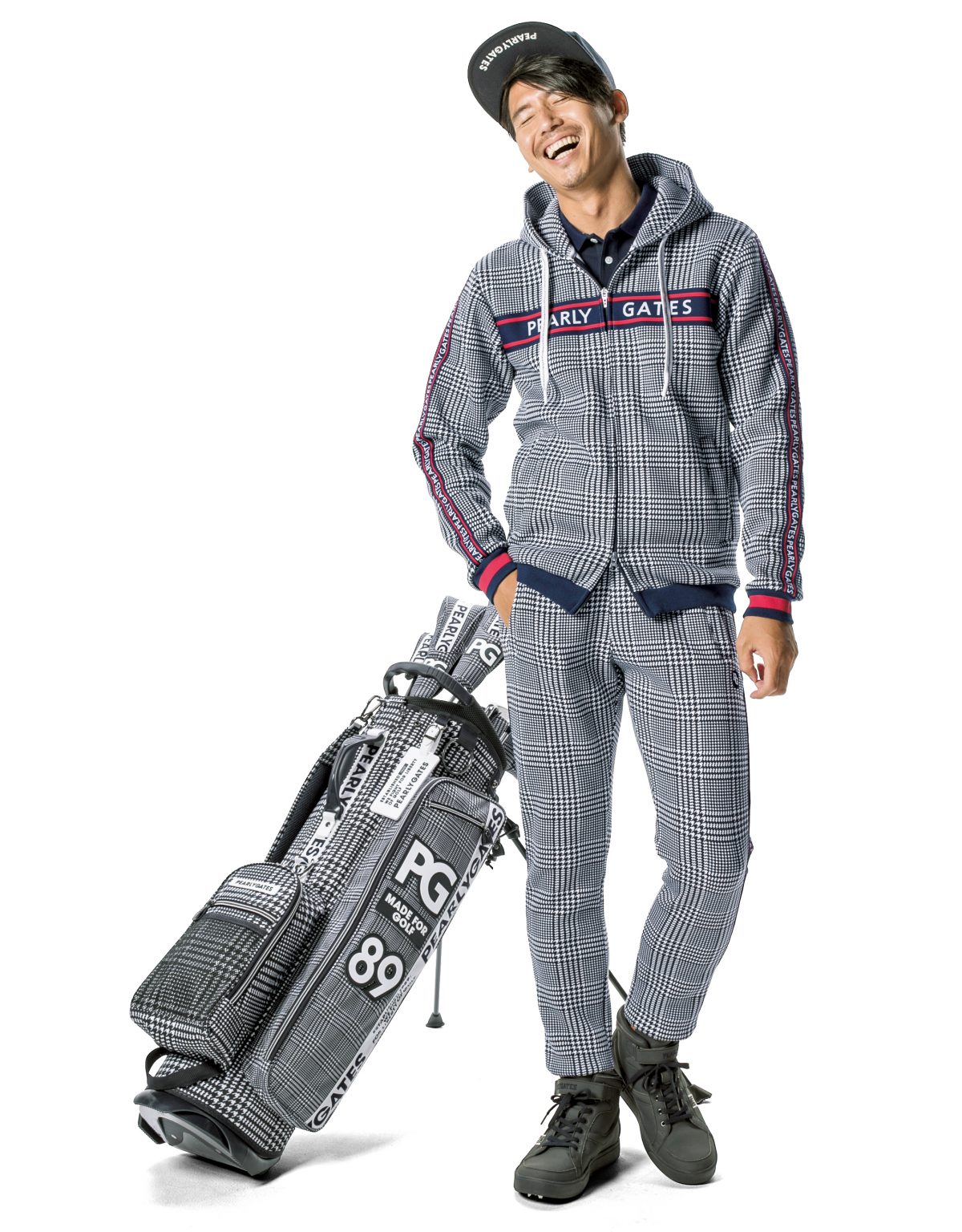 トラッドなグレンチェックに、PGロゴが出会った、新しいグレンチェックスタイリング。王道ベーシックなコーディネートはそのままに、グッと新しさを感じさせるニュースタイルに。