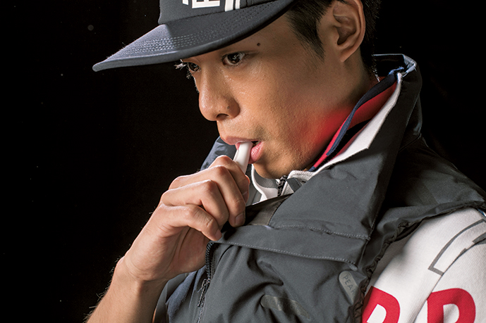 中村:はい。吹き口から注入した空気が断熱効果を発揮する、画期的なニューアイテムで、その発想もですが、デザイン性も面白いです。合わせたポロシャツはレイヤードで、それぞれの柄を楽しむ感じです。