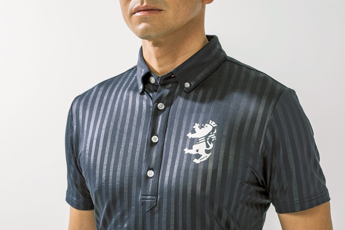 ストライプ柄をエンボス加工で表現したことにより、シルエットを綺麗に見せてくれる効果もあるボタンダウンポロシャツ。