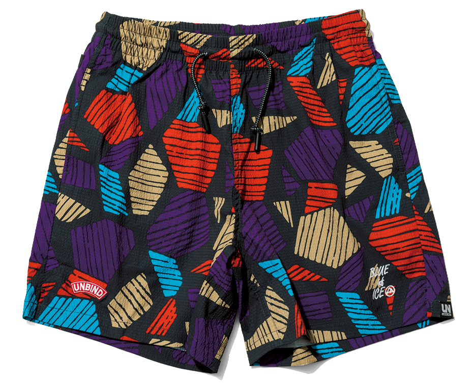 夏に最適なサッカー生地にアーティスティックなプリントを施した洒落ショーツ。ストリート感のあるデザインは無地ポロ合わせで。