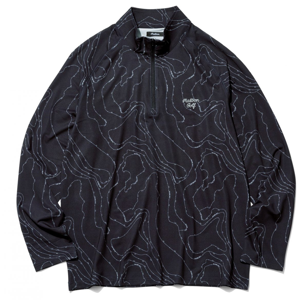 地図の等高線をグラフィックで落とし込んだデザインが、モードな雰囲気も醸し出すハーフジッププルオーバーシャツ。
