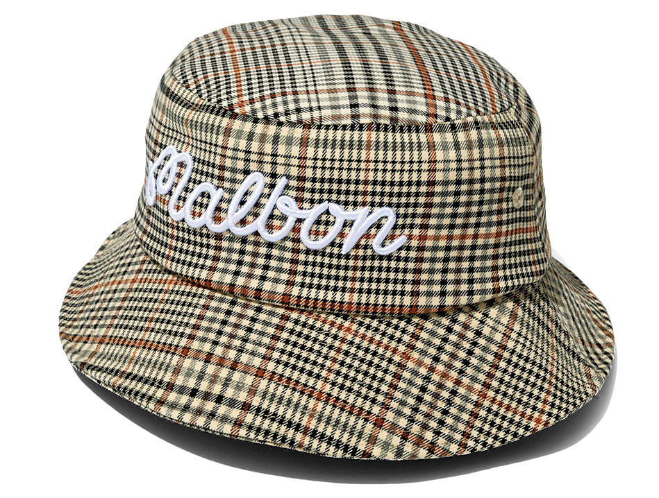 落ち着いたチェック柄に立体的なブランドロゴ刺繍を施したアンバランスさが、同ブランドらしいアイテムのバケットハット。