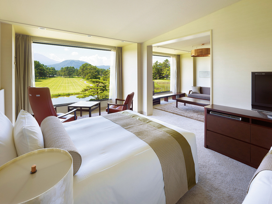 客室からは軽井沢プリンスホテルゴルフコースを一望