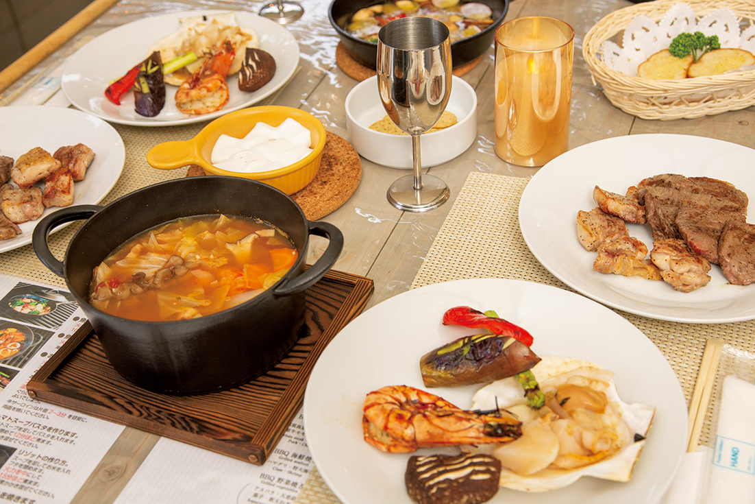 新鮮な野菜、肉、海鮮……とフルコースの豪華バーベキュー
