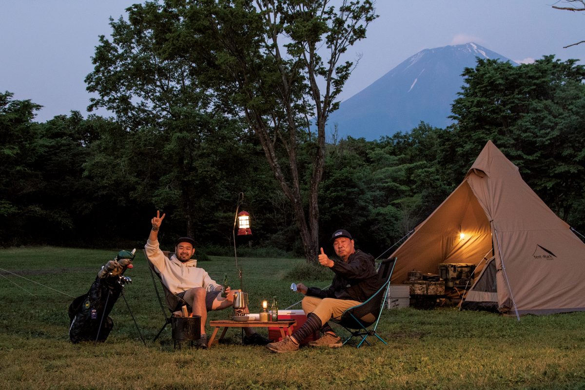 より本格的なアウトドアを楽しみいたい人は、必要な道具を持参もしくはレンタルして、テントの設営や料理も含めて楽しむキャンプに挑戦しよう。今回はキャンプ沼にハマっている『EVEN』副編集長のフクダとカメラマンのコータローが、テント泊からのラウンドを満喫!