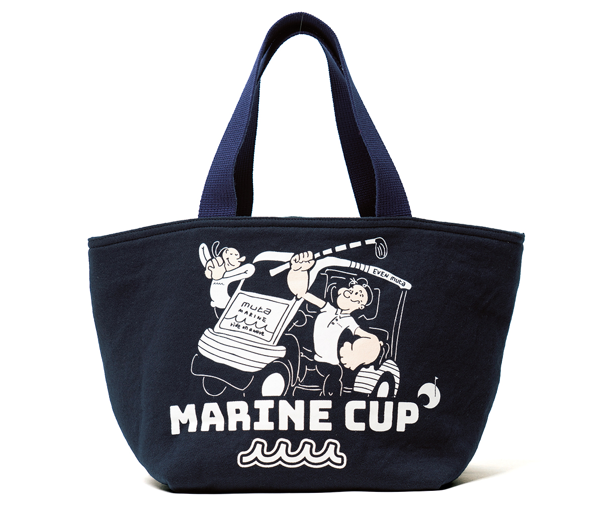 三重県の津カントリー倶楽部で8月31日まで開催されているロングランコンペ「MARINE CUP」を記念し、コンペ会場に設置されるポップアップストア限定アイテムをEVENオンラインストアで特別販売! 一枚布で作られるオリジナルデザインのカートバッグは、以前『EVEN』でも紹介したことのある「ムータマリン」のラッピングカートをイラスト化し、ポパイとオリーブという人気キャラも添えられる豪華仕様だ。柔らかい肉厚な素材で作られる。