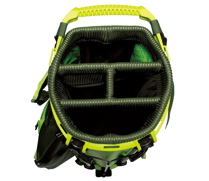 様々なクリアキャディバッグがリリースされる中、こちらは透明そのもの。ゴールドラインがアクセント。