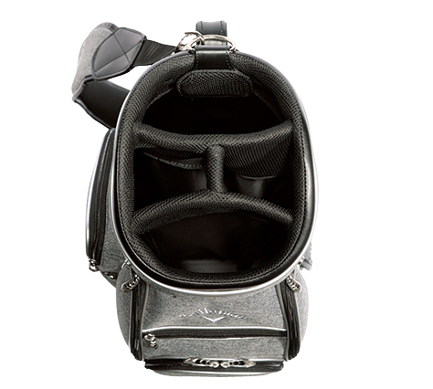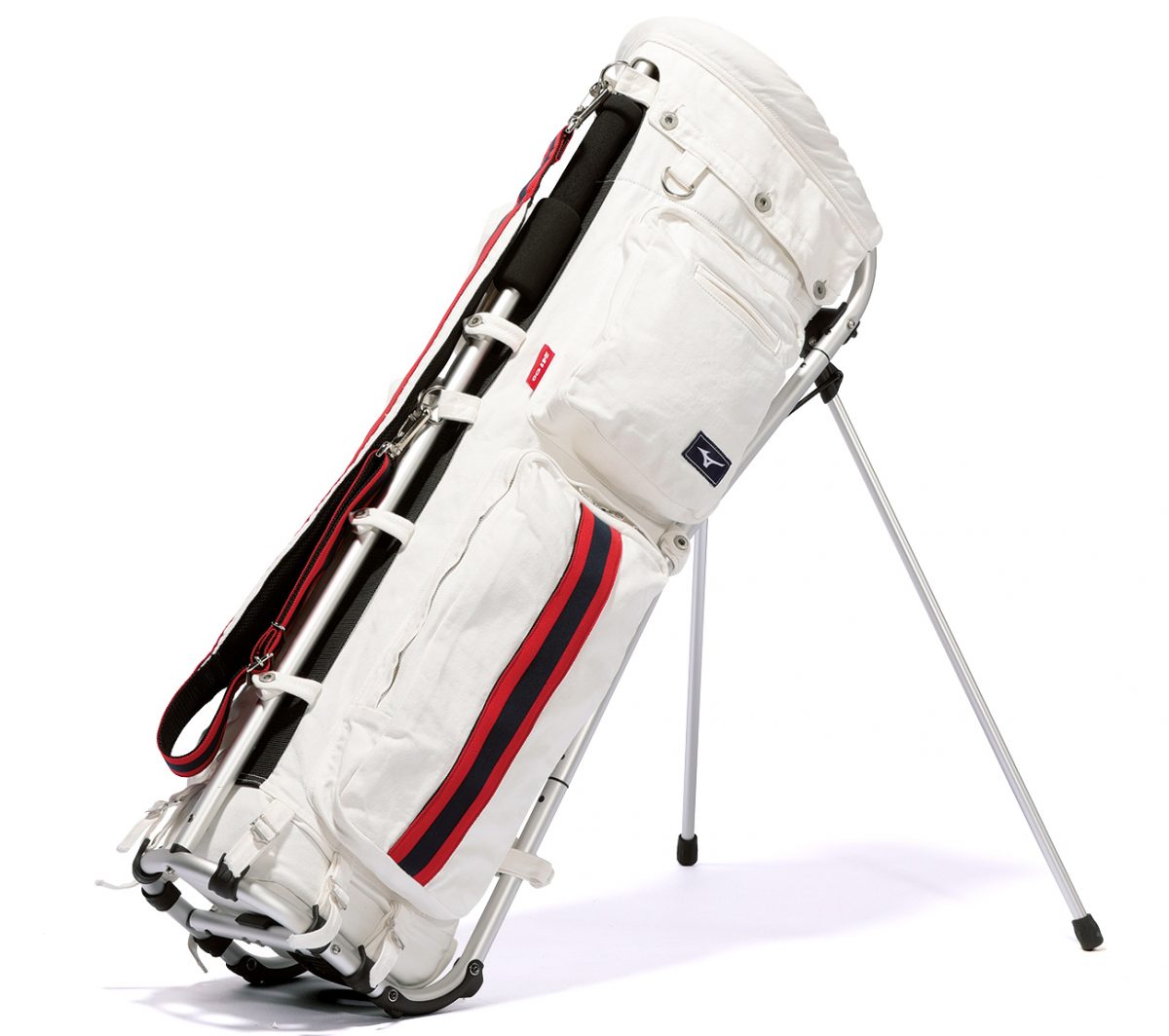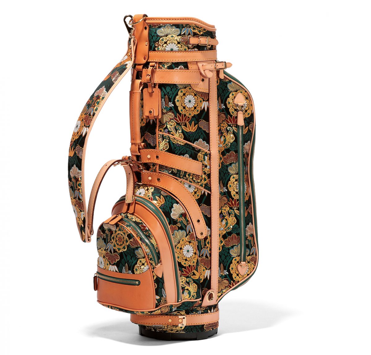 本物のジーンズとレザーコンビのキャディバッグ。重厚感もあり、所有する喜びも得られる。