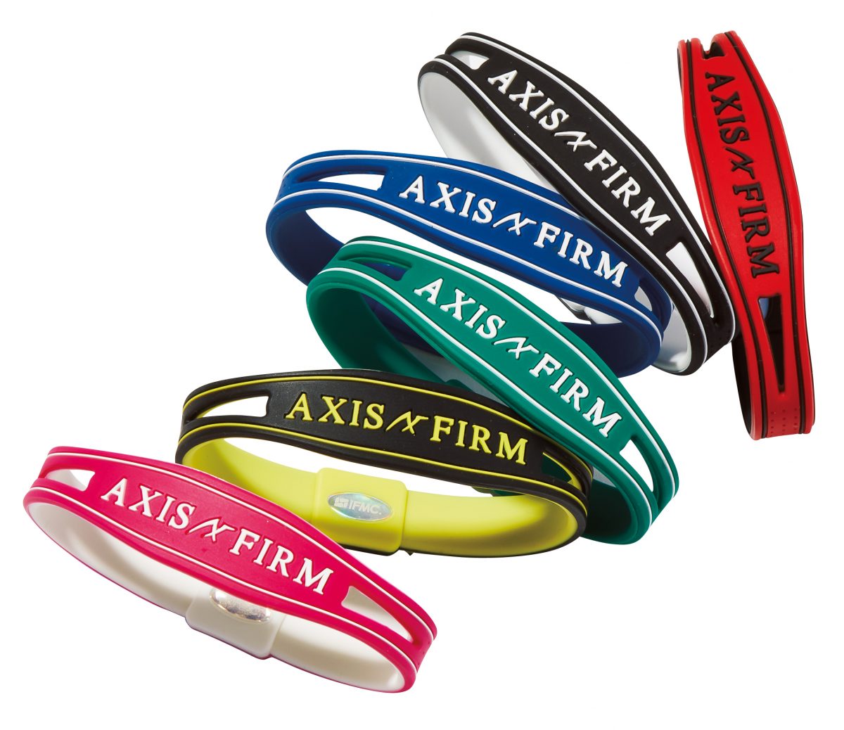 体幹の安定、バランス感覚やリカバリー向上が期待できる「IFMC.(イフミック)」を含んだ、シリコンブレスレット。豊富なカラバリも嬉しい。各4,400円(問:サンフォード アクセフ担当/058-278-0701)