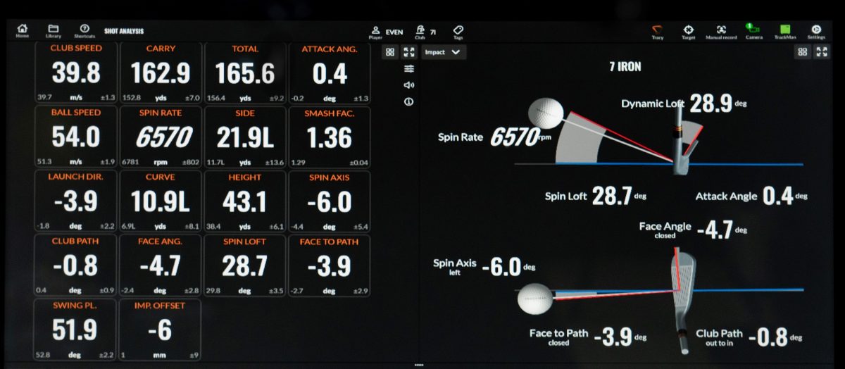 飛距離、やさしさ、正確性、フィーリング、美しさ、アイアンに求められる理想的なパフォーマンスを高いレベルで具現化したのが『APEX アイアン』だ。前作で搭載されたタングステン・インナーウエイトの重量を大幅に上回る「タングステン・エナジー・コア」が、さらに高いボール初速と最適化されたスピン性能をもたらしてくれる。計測でもマイアイアンよりボールスピードが約4メートル/秒ほど高い結果となった。スイングスピードを上げなくても飛距離が出るので、より楽にブレの少ない安定したスイングでターゲットを狙うことが可能だ。