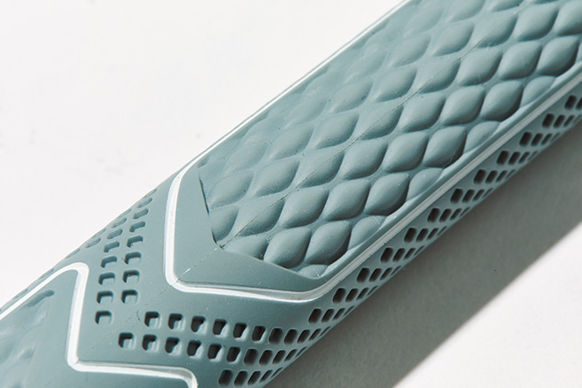 近未来的な外観はもちろん、タイヤの非対称トレッドパターンのごとく計算されたテクスチャーが肝。これはゴルフプライド史上“最柔”の素材を、いかに握りやすくグリップさせるかを考えた結果生まれたものだ。
