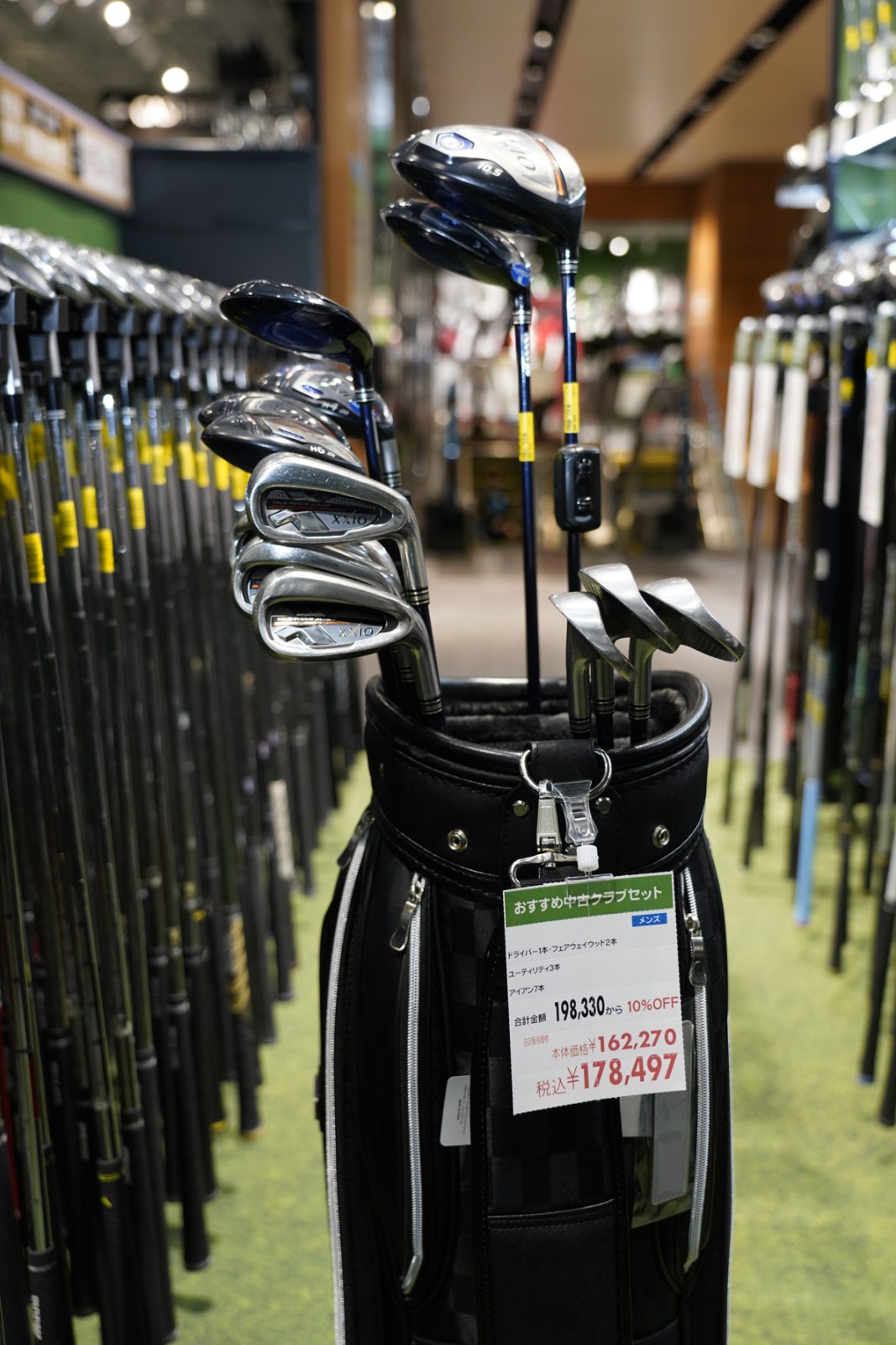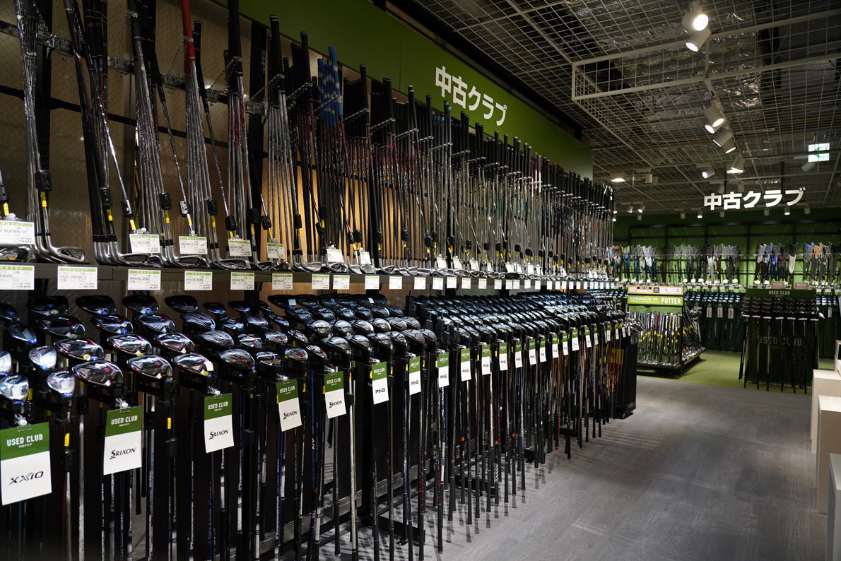 さらにゴルフクラブの充実度は高く、スペック違いの吊るしのクラブが多数用意されている。試打室は全8ブース、女性優先打席もある。中古クラブコーナーも設置され、初心者には買いやすい14本セット+キャディバッグなども販売される。