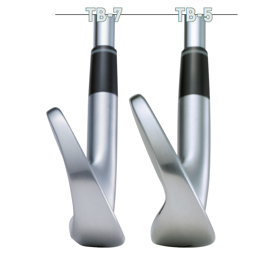 TB-7の方がやや小ぶりで、ストレートネックとなり、左のミスを嫌うアスリート好みな顔。ブレードも薄めだが、ブラスト処理を加えて厚く見せるなどの細やかな設計が行き届く。