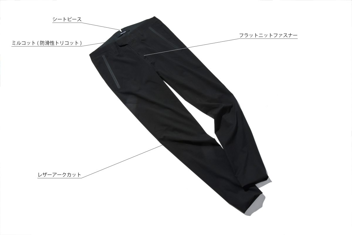 続いて、パンツもラインナップ。単体のアイテムとしてローンチされることが多い、同シリーズにあって、スタイルで揃えられるのは非常に有り難い限りですが、このパンチもまたトリポーラスを採用してます。細部を見てみましょう。