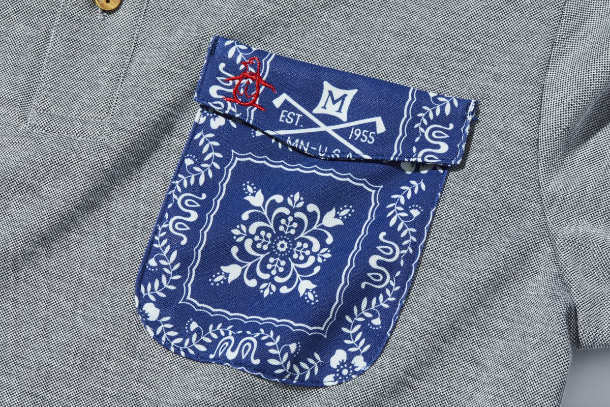 アイテムを見ていくと、“いかにも”というデザインが何より印象的。これはレインスプーナーの中でも「ラハイナ」という定番的に使われる柄なのですが、よく見れば柄の中にペンギンが入っていることに気づくでしょう。それつまりマンシングウエアのために作られたグラフィックであることの証。そそります。加えてシャツには生産時に出る端ギレや焼却される繊維製品を再生した糸「RENU」を使用しています。昨今のSDGsブームも勿論意識しております。さらに柄の素材は、ドットエアを採用しているので特にショーツなどは実に涼しい。伸縮性もあって機能面も申し分なし。この辺りは流石ゴルフウェアのトップブランドといったところ。