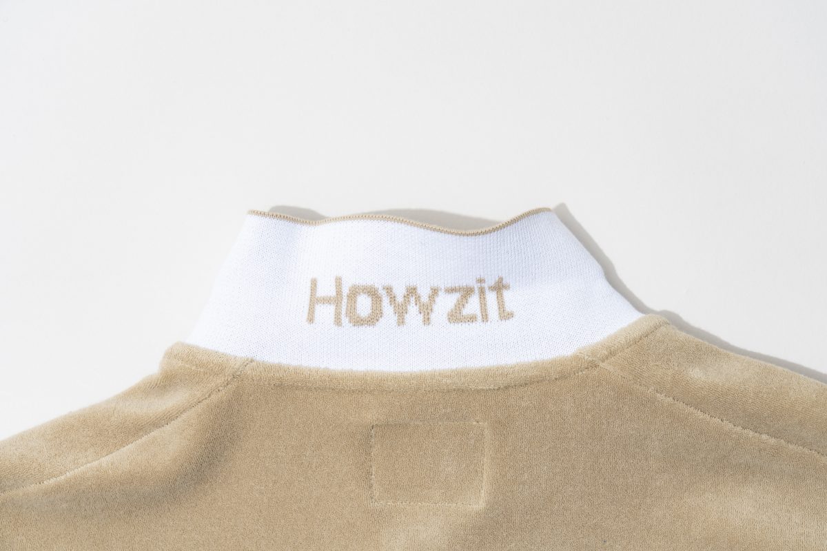 襟裏には「Howzit」という文字を織り柄で表現、ハワイ語で「調子どう?」という意味には、このブランドのリラックスしたイメージを込めています。