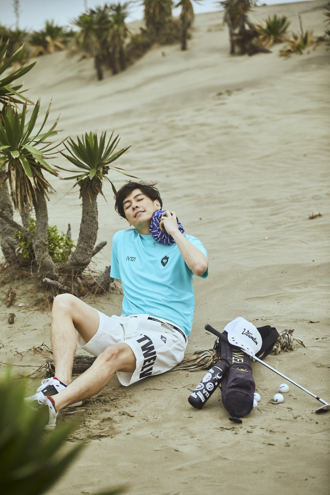 キャップ¥7,700、ポロシャツ¥20,900、ショーツ¥22,000、ベルト¥16,500、シューズ¥19,800、セルフバッグ¥16,500(すべてヴィ・トゥエルヴ)、その他スタイリスト私物