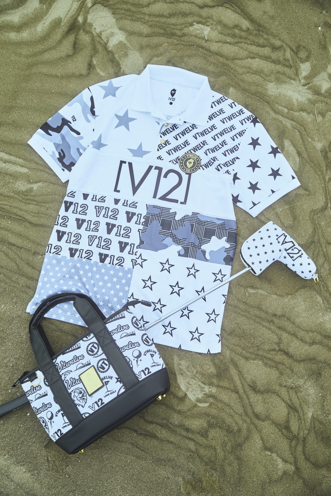 V12ロゴとV12ライオンが連続で配置されたポップなデザインに仕上げたインパクト大のポロシャツは、遠くからでも ‟V12ラバーズ” だと分かる、オリジナリティ溢れるグラフィック。