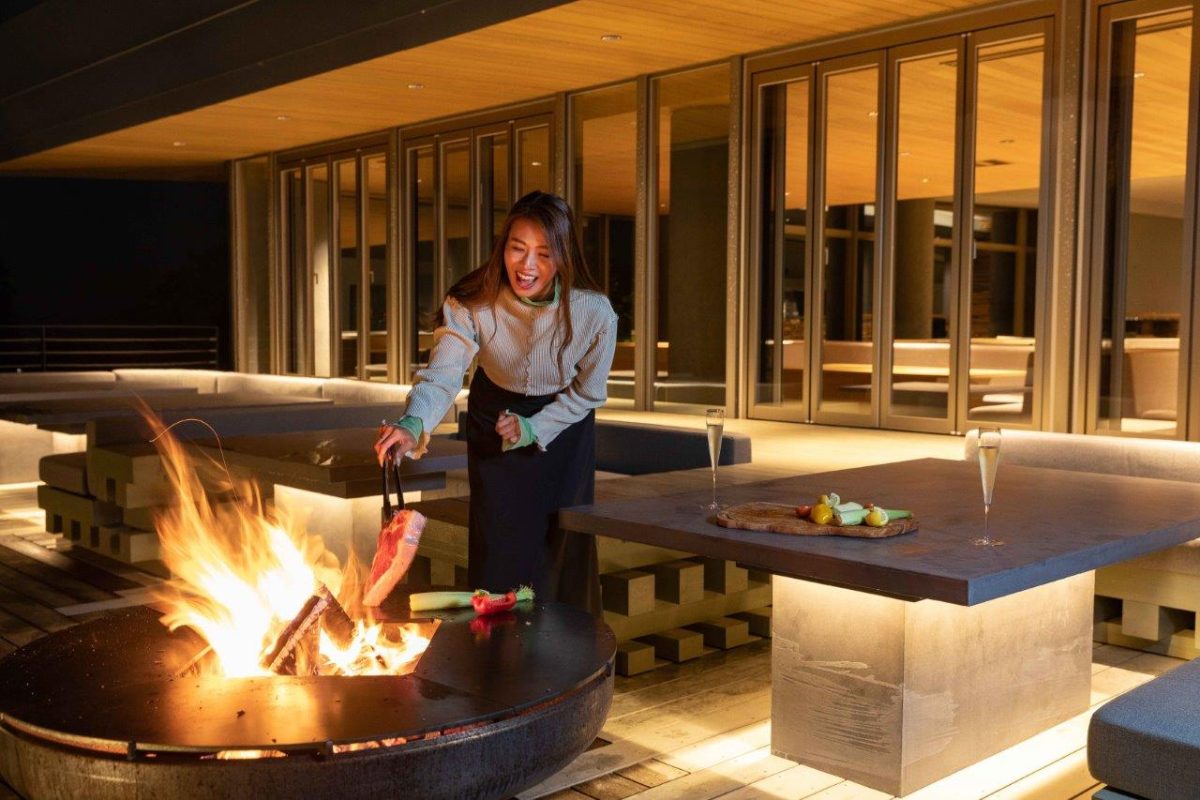 クラブハウス2階のレストランを抜けた、屋外のテラス席ではグランピングよろしく、焚き火を使ったセルフBBQが楽しめます。食材は写真のTボーンステーキや地元産のお野菜など新鮮な食材ばかり。もちろん食事とのマリアージュが楽しめるアルコールもFreeFlow、つまり飲み放題なんです。ディナーはこのBBQの他、和食とフレンチが、曜日毎に日替わりで設定されているので、何度でも通いたくなってしまいますね。