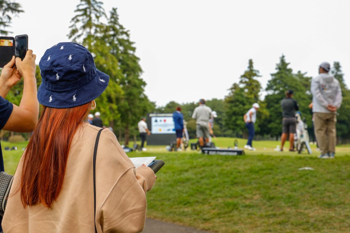 コース内ではスマホを手に撮影するギャラリー多数! 選手がショットのルーティンに入ってからの動画撮影の開始・終了操作(音が鳴る動作)は禁止ですが、皆さんしっかりマナーを守って撮影されていました。