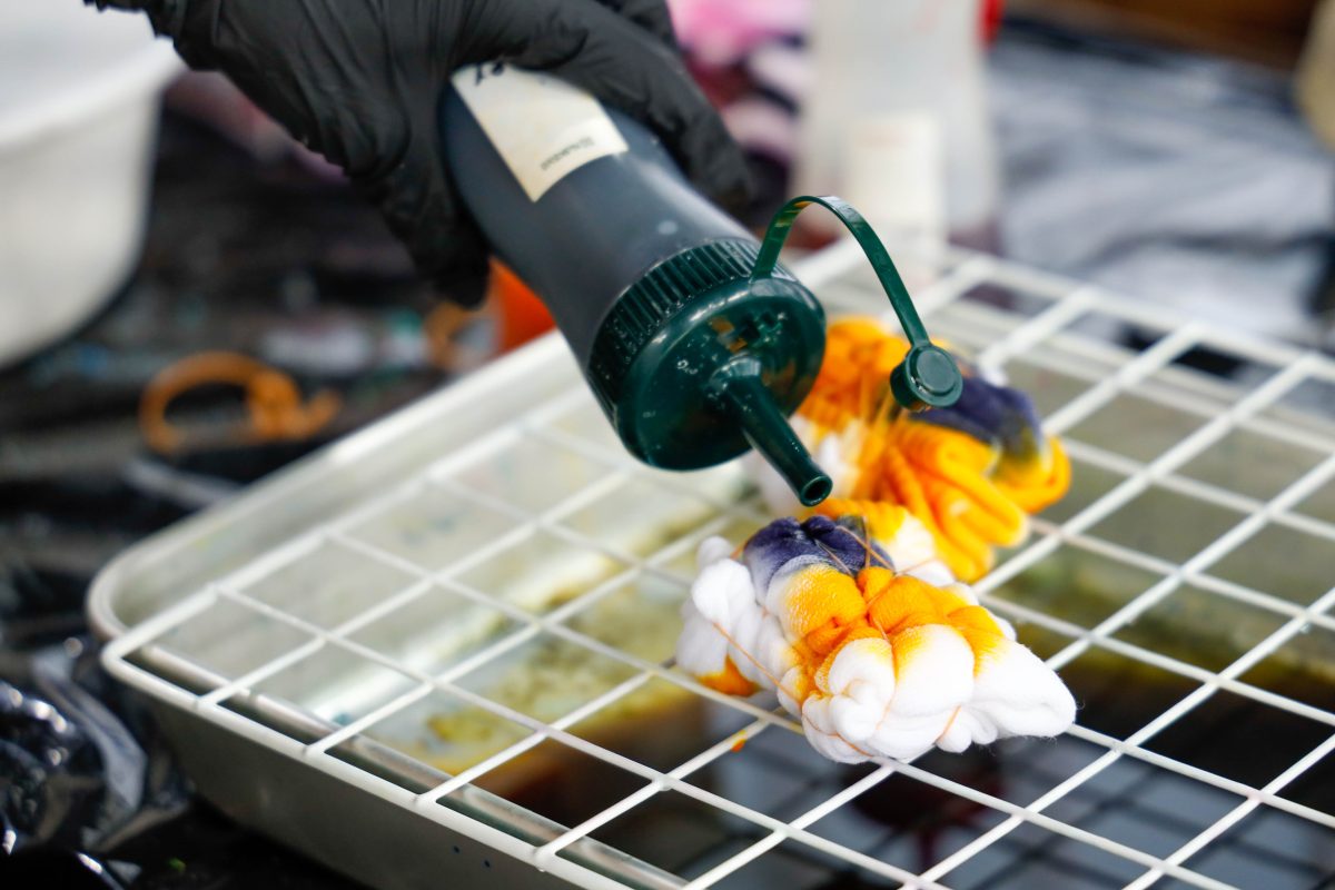 各スポンサーブースでも趣向を凝らしたコンテンツが用意されていて、ワタシは「アディダス」のブースで、有松絞りの技法を使ったオリジナルソックスづくりに挑戦。染めたソックスは持ち帰り、翌日に何度も洗って乾燥させて仕上げます。完成品は「EVEN12月号」(11月5日発売予定)のZOZO CHAMPIONSHIP特集でお披露目させていただきますね(笑)