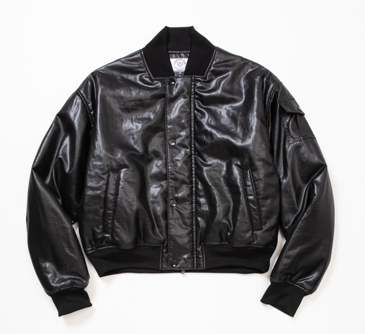 ウェットで艶っぽい光沢感のあるビンテージレザー調ポリエステル素材を使用したショートブルゾン。こなれたライダース風のデザインは、甘めなアイテムが多いレディスウェアに一石を投じるエポック。ややクロップド感のあるショート丈のデザインながら、中綿に「サーモライト」を使用するなど、防風保温機能はしっかり押さえている。