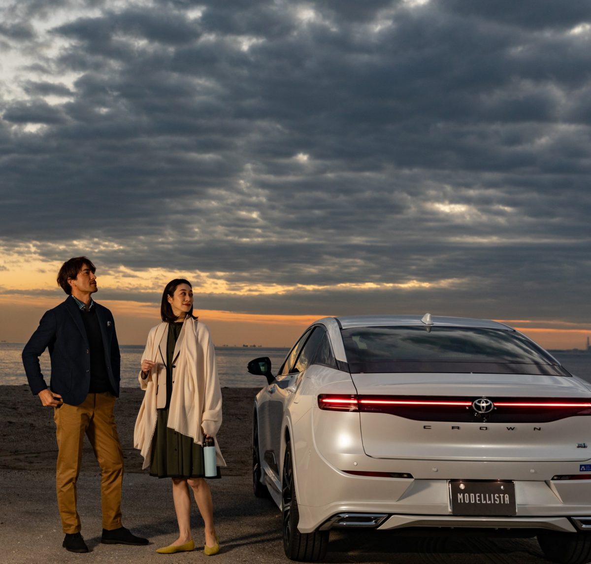 夜風が少しひんやりとする中、ストールと立ち寄ったカフェで淹れてもらったコーヒーを渡す。夕日が映りこんだクラウンとパートナーをスマホに収める。「夕食はどうする?」という問いに「行ってみたいお店がある」という返事。クラウン・モデリスタで出掛けると、週末の時間はゆっくり長く感じられる。次のラウンドはもう少し遠くへでかけてみようか。