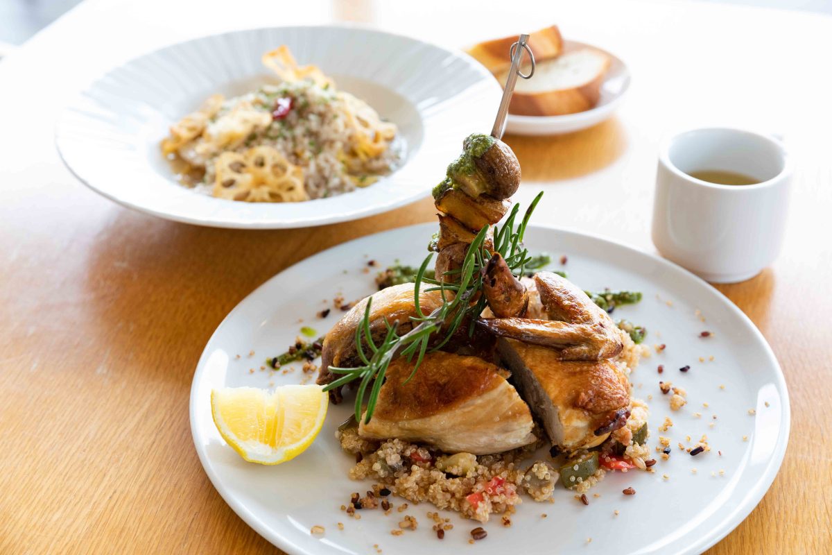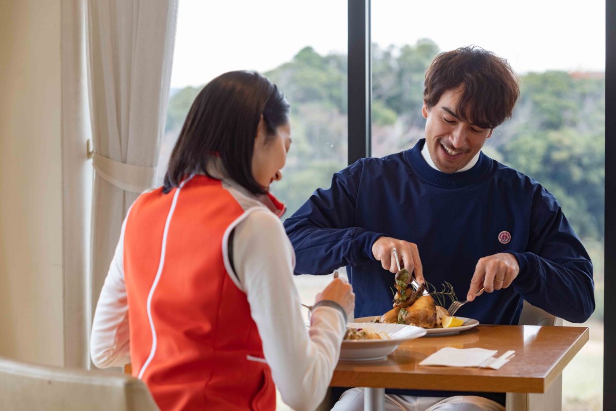 夕日がさしこむ時間帯ゴルフコースは一層美しさを増す。まだ見ていたいと後ろ髪をひかれつつ帰路へ。とはいえ、週末の渋滞にとびこまず、寄り道がてらカフェへ立ち寄り、軽く反省会。