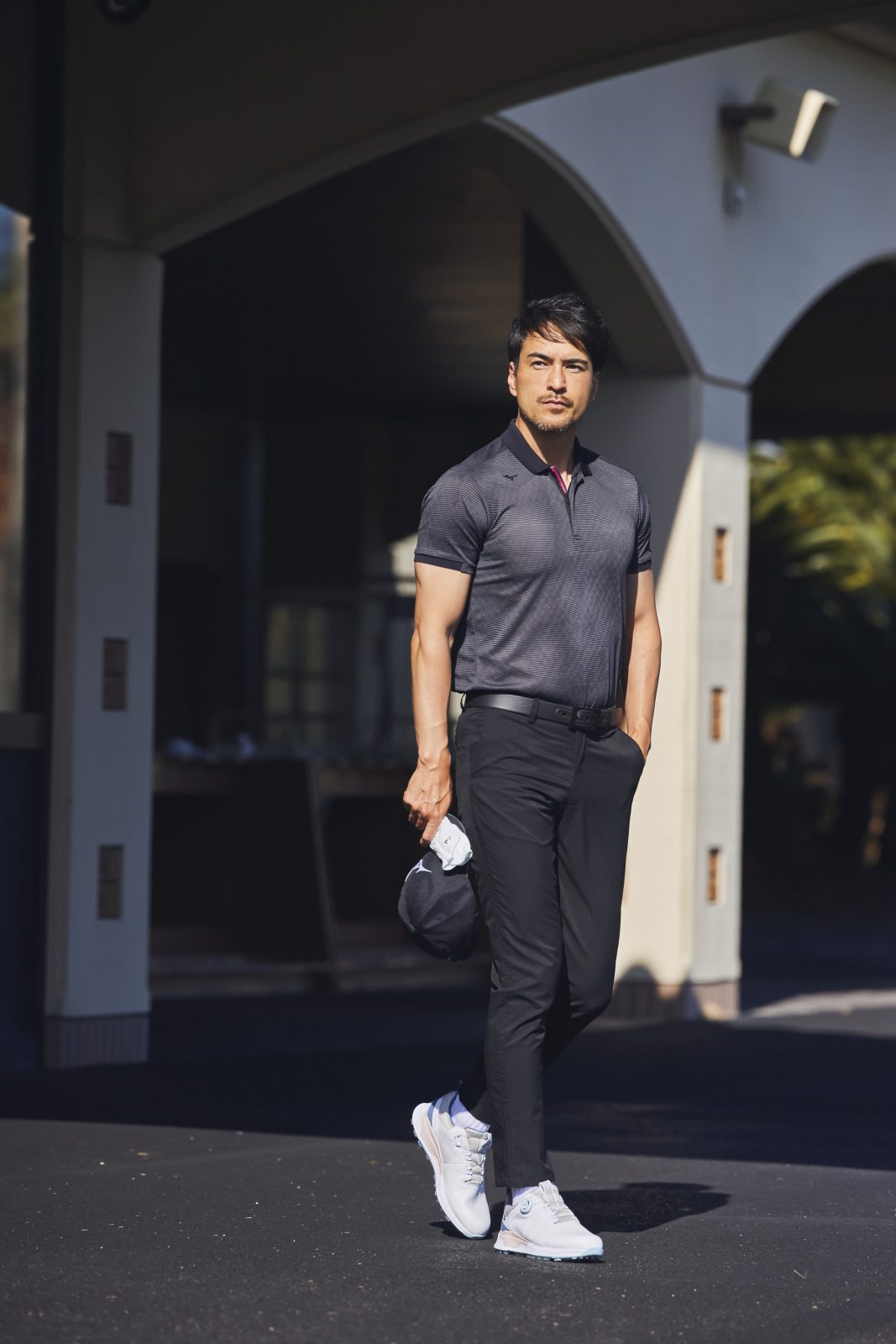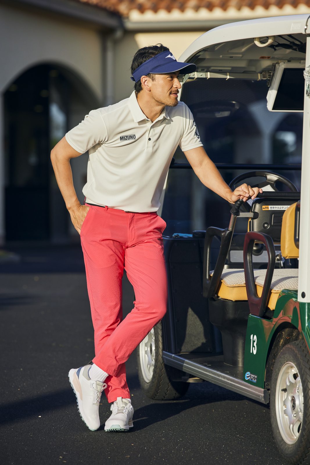 そんなフレッシュな時期にミズノの新作ウェアに身を包めば、アスリート顔な雰囲気も醸してくれるからツアー選手さながらな気分に浸れるだろうし、コースで見える景色も普段とは違う気がしている。今シーズンの「ストレッチヒーローパンツ」と「驚着極伸パンツ」を人気モデルでゴルフの腕前も業界トップクラスのロランに履いてプレーをして、履き比べてもらった。