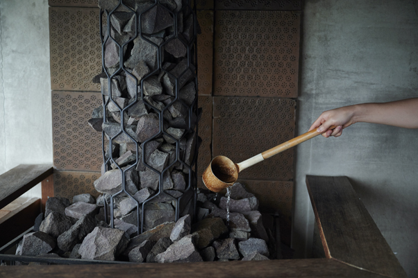 完全予約制、150分の貸し切り利用となるプライベートサウナ。薪をくべるフィンランド式のサウナストーブを擁し、セルフロウリュウやスタッフによるアウフグースが存分に堪能できる。
