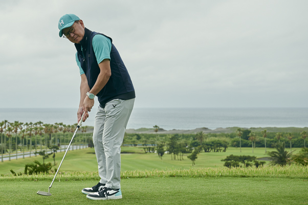 今回は3名のサウナ好きゴルファーにご同伴頂いた。上から、ゴルフラウンドサブスクリプション「TeeRexゴルフ」の広報あやなぴん。毎日野毛で飲み歩いているらしい……。あと、東京の成増に老舗サウナとして君臨する「ヒルトップ」のオーナー金子文さん、通称ぶんさん(そのまま)。EVEN誌面でのヘアメイクご担当のタイタイとラウンドへ。終了後お風呂にも入らず、一同サウナへと急ぐ。