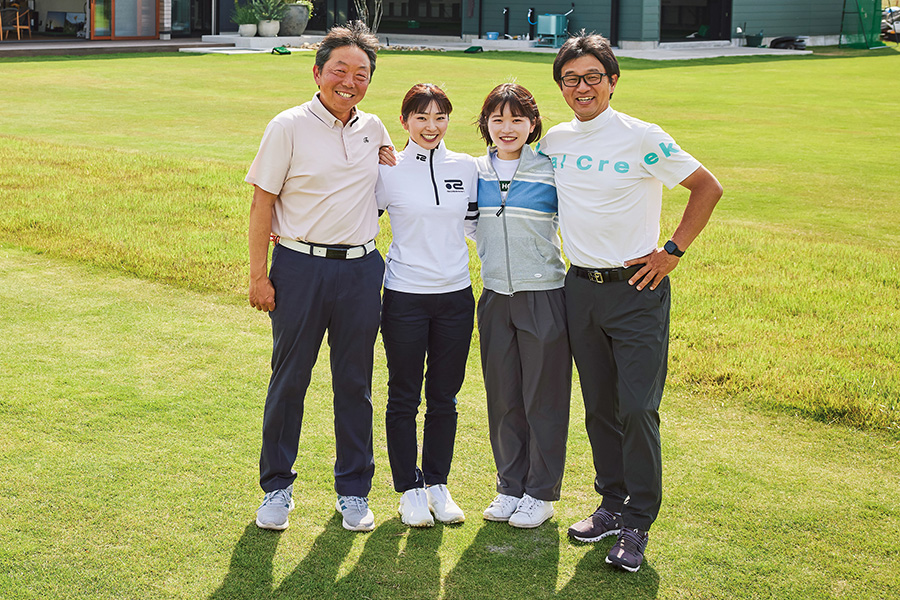 右から代表の横田英治プロ、チーフマネージャーの小内愛美さん、インストラクターの岸部華子プロ、チーフインストラクターの谷古宇智紀プロ。スタッフの和気藹々ぶりもここの居心地の良さを生む。