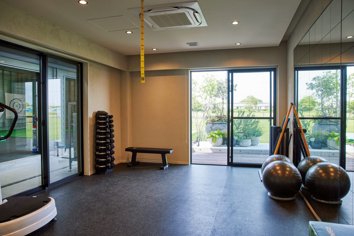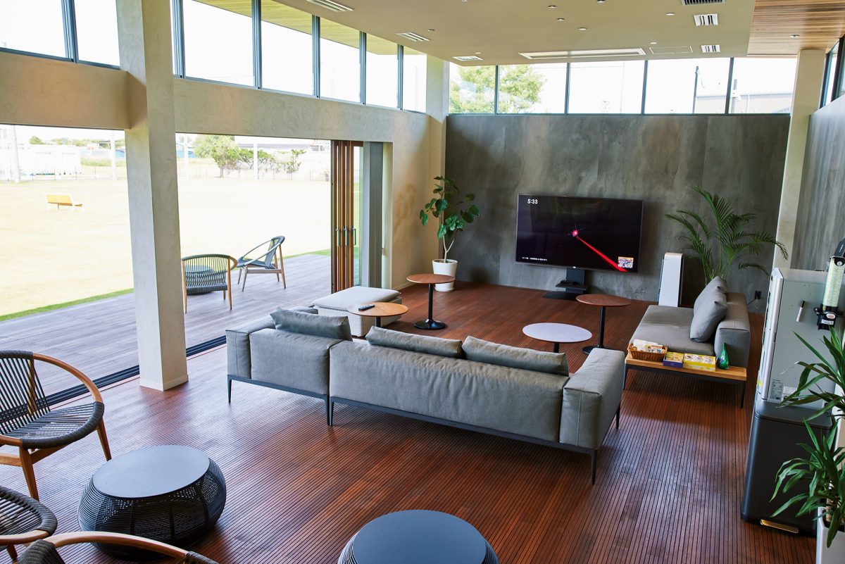 トレーニングルームがあって広々としたリビングスペースとテラスもある。インストラクターも常駐するのでレッスンも受けられるのだ。「渡り鳥のようにゴルファーが帰ってきたくなる場所を目指した」というコンセプトは見事に具現化されている。