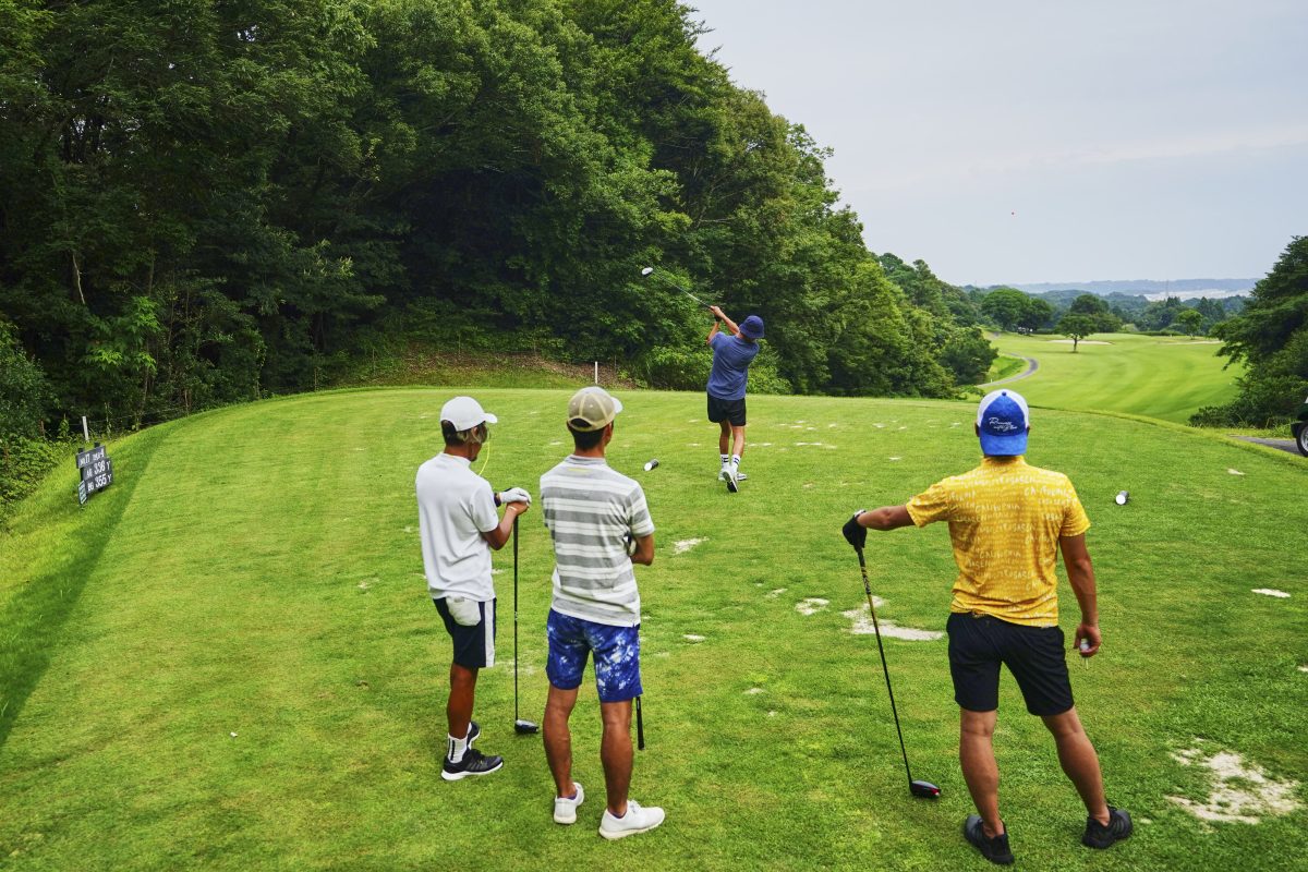 午前のサーフセッションを終え、ランチタイムでエネルギーをチャージしたら、ゴルフコンペの会場となる「相良カントリー倶楽部」へ移動。参加者はアメリカ西海岸のサーフ&ターフな世界観とマッチするブランドの“ロサーセン”を着用し、装いも新たに一気にゴルフモードへ。