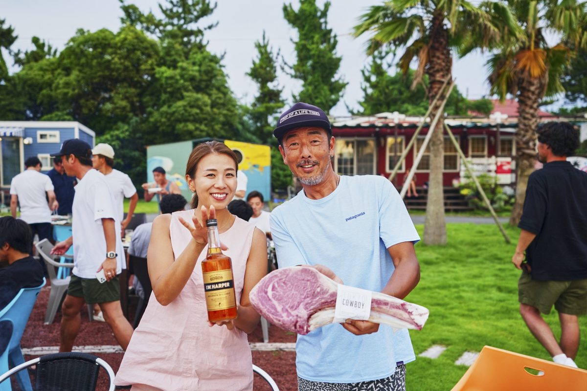このイベントを通して、「サーフ&ターフと言えば、I.W.ハーパー!」と思い浮かべてもらえるように、カルチャーとして盛り上げていきたいと話していたのが、ディアジオ ジャパンの尾崎圭さん。I.W.ハーパーは単に愛飲されるだけでなく、こういったライフスタイルとともにあるべきと常日頃考えこのイベントを継続している。