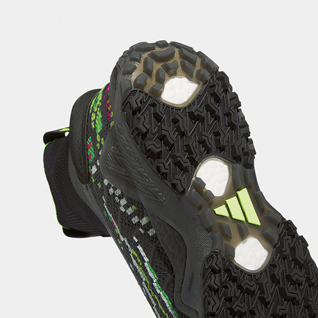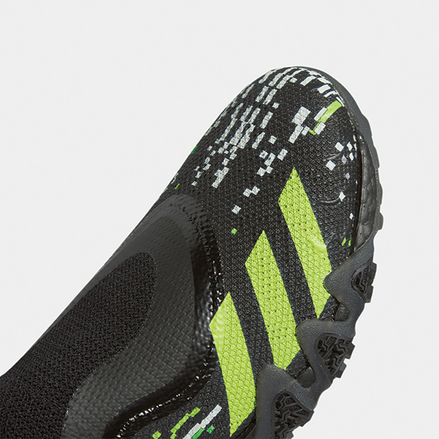 アディダスの最新テクノロジーによって生み出されたスパイクレスアウトソール「ツイストグリップ」を踏襲し、高いグリップ力はそのままに、ミッドカットとレースレスならではの快適性や安定感を実現している。