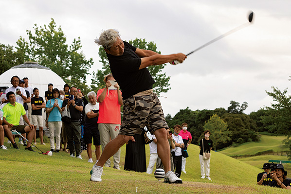 ツアープロ、ドラコンプロの6名が参加してのドラコン大会。クラブハウス横の特設ティから放たれる豪打には参加者も驚嘆!優勝は357ヤードを記録した塚田陽亮プロ。
