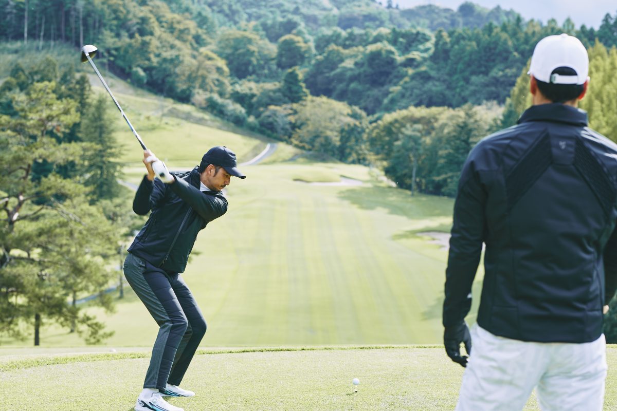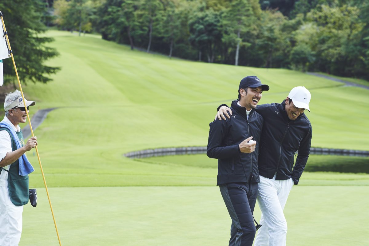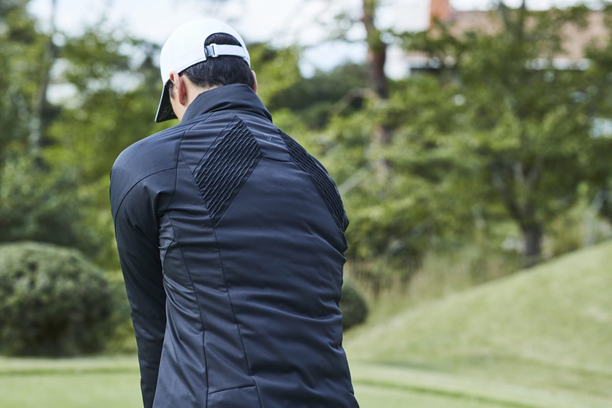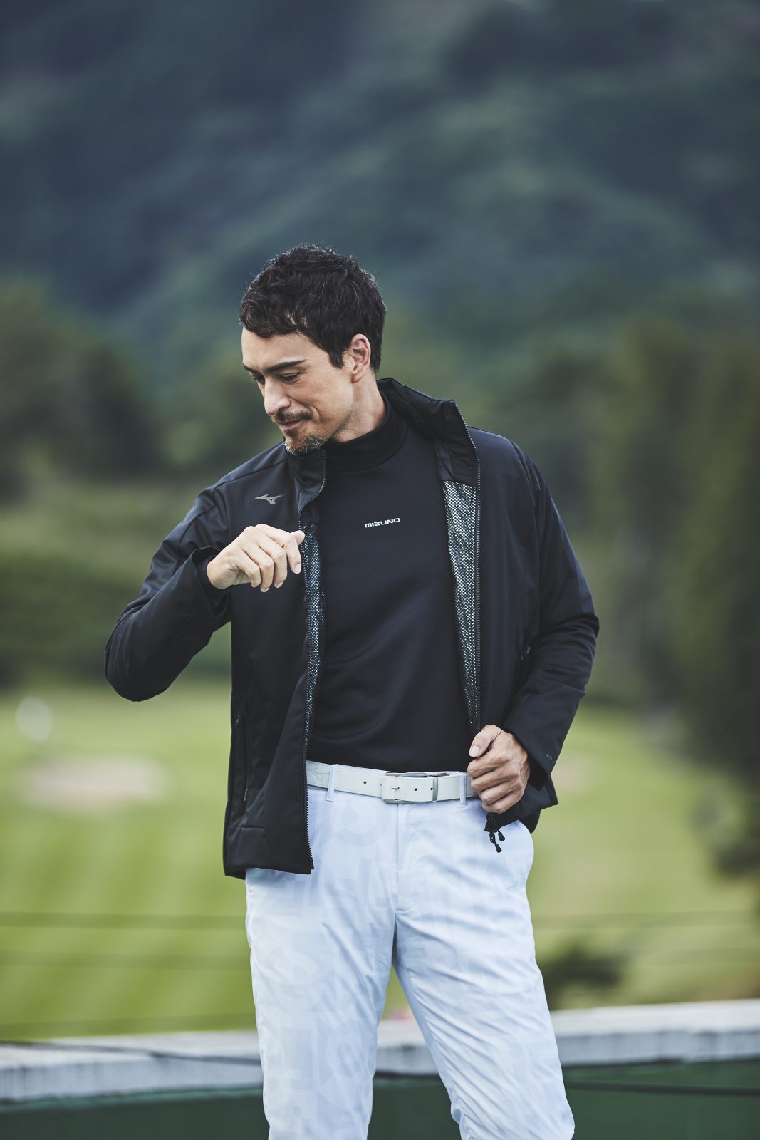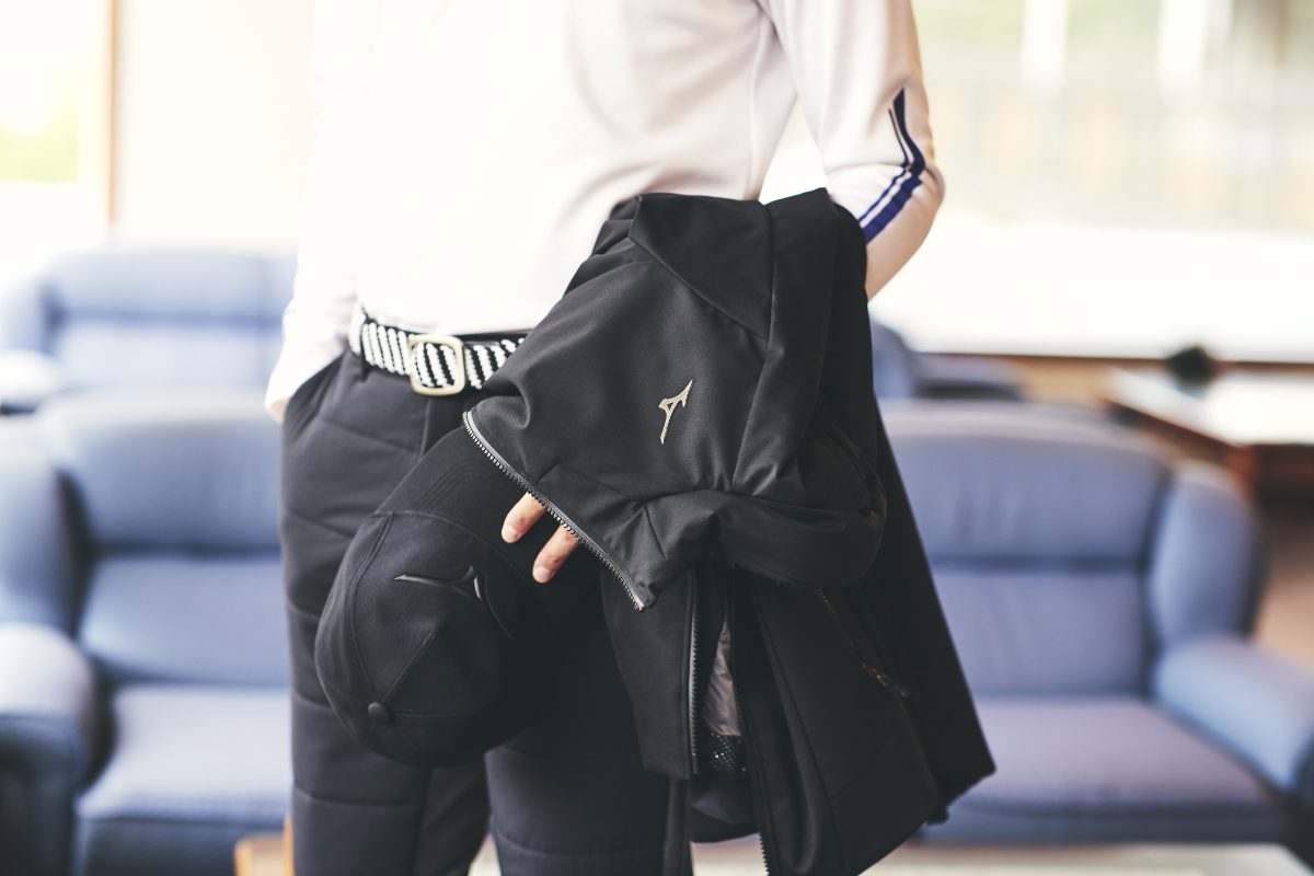 プレー前にクラブハウスで温めた体はそのままにティーイングエリアへ向かえば、ティーショットのために脱いでから打つなんて煩わしい事も必要ないだろう。そして、モンスタームーブダウンに身を包んだゴルファーのシルエットの美しさと貫禄は、ツアー選手さながらの雰囲気も醸し出してくれる本格派。要所にデザイン的にトレンドも入れつつ、プレーの質を高める機能性の豊富さ、王道を行く貫禄はさすがミズノである。