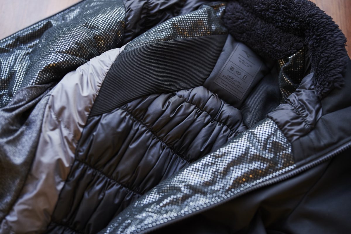 ダウンに凹凸を持たせているから、温かい空気層を生み出し、衣服の中に閉じ込める。ブルゾンの内側(背中部分)を覆うこの”テックライニング”の恩恵を体で感じてほしい。