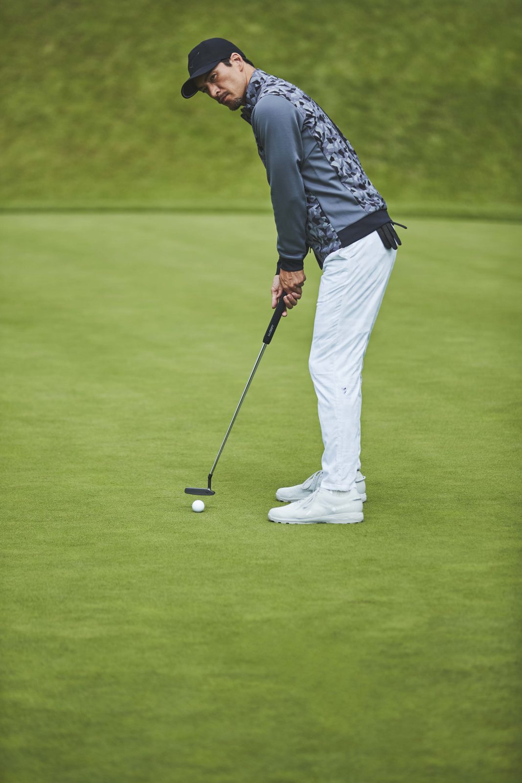 機能性を楽しむのは元より、ゴルフウェアにおいてデザイン性も楽しめる。モダンな印象のカモフラ柄はこれだけで存在感があるから、何をどう着るか?などと、コーディネートで悩むくらいなら、セットアップがおすすめ。色違いで組み合わせても統一感のあるキチンと感も演出できるし、遊び心も感じられるデザインだから、ゴルフ仲間にも楽しそうな雰囲気は分かり易く伝わるという次第。