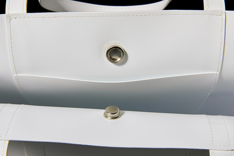 直線と曲線を組み合わせたミニマルな設計。ノーブルな表情をもつ素材を最大限に生かしたデザインは、多様なシーンに溶け込む仕上がり。[TOTE B]各17,600円