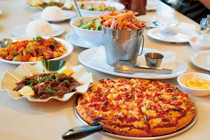名物はビックサイズのピザ。ビーガンピザやシーフード、ローカルフードも多数揃うので、グループ旅行の食事スポットとしても活躍してくれる。