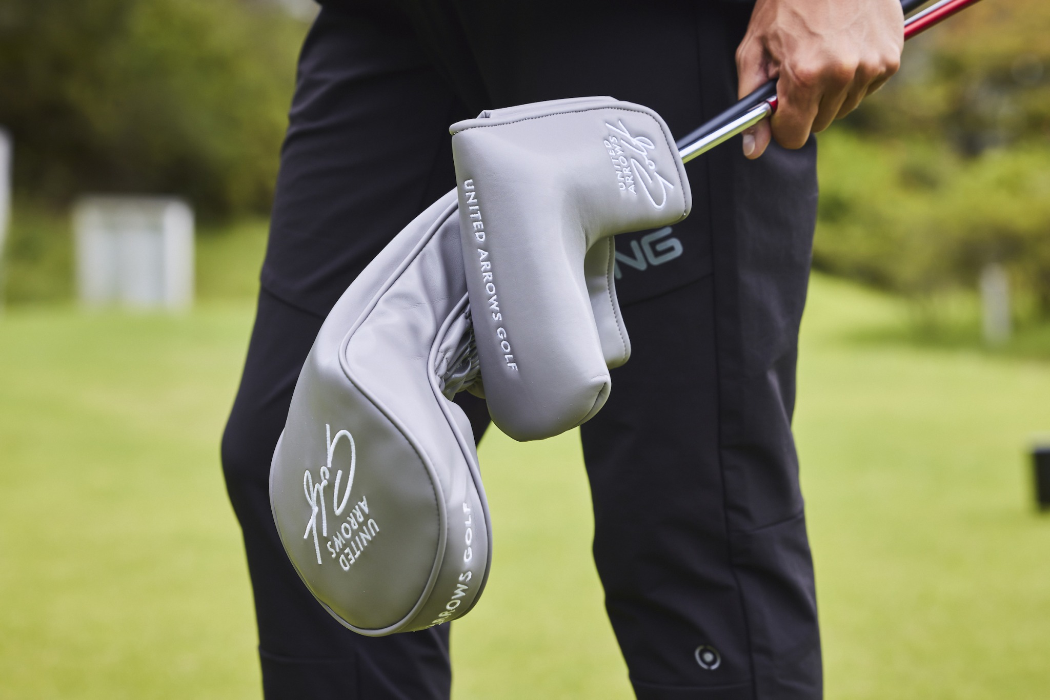 雨などにも強いシンセティックレザーを採用した上品な光沢感が楽しめるヘッドカバー。どんなキャディバッグにもしっくりくるグレーの色合いが◎。